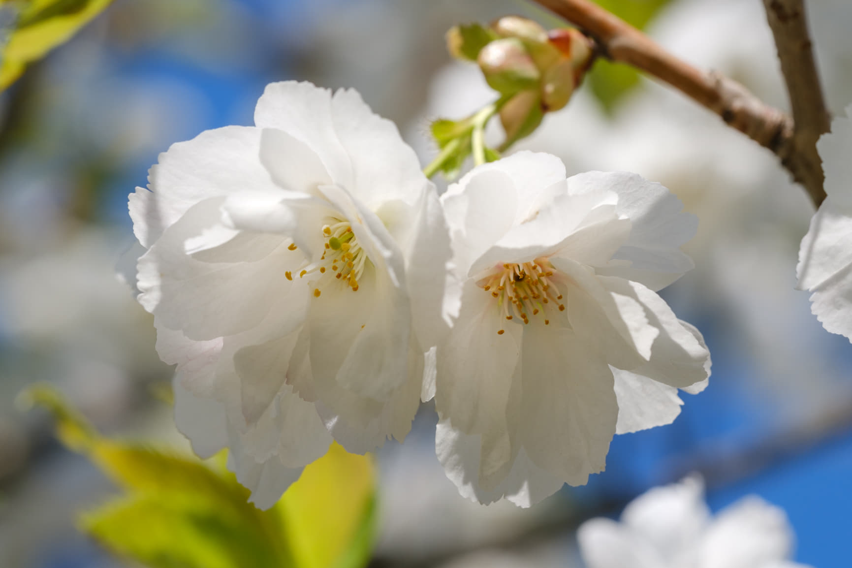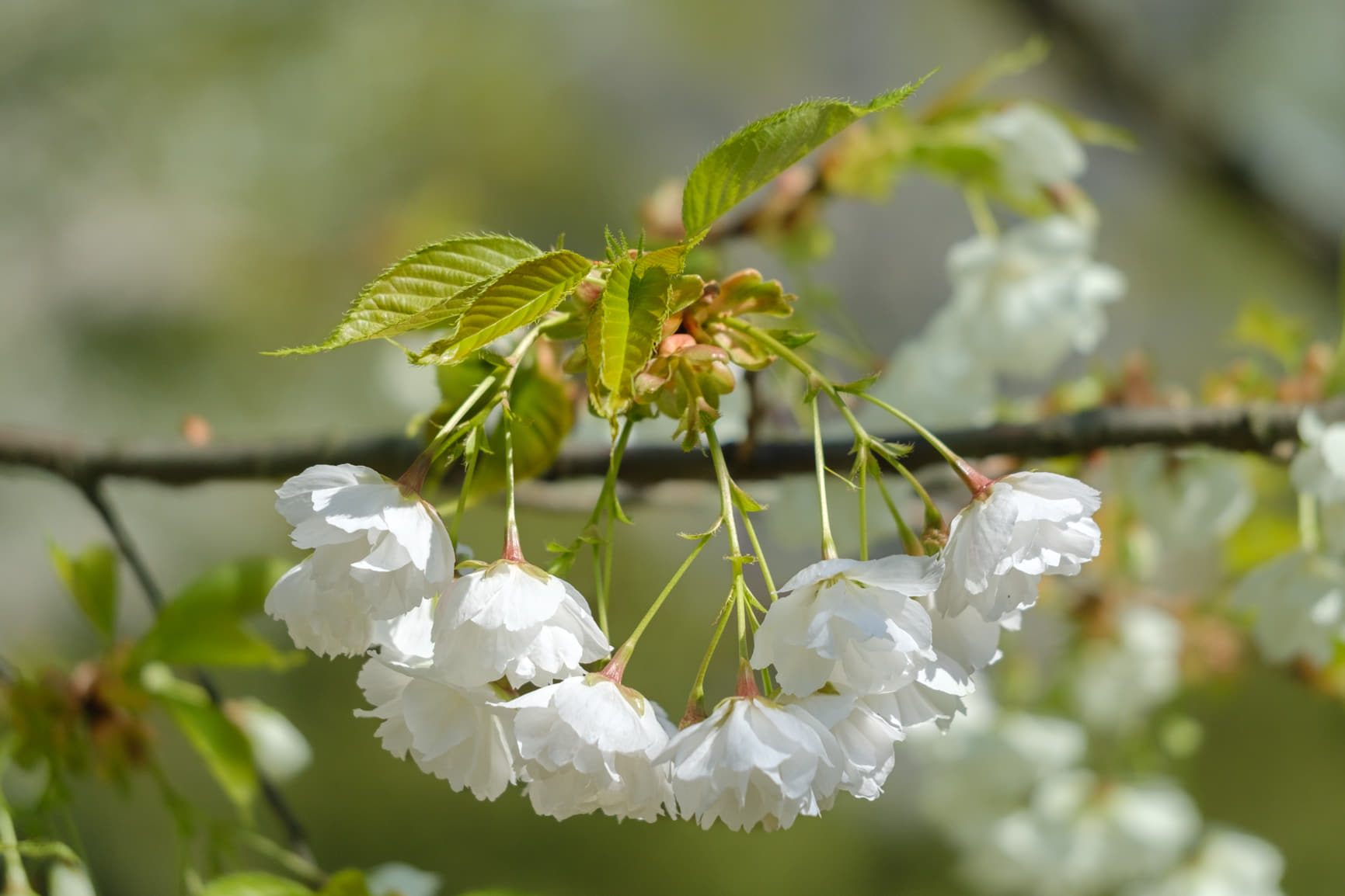 Wiśnia japońska (sakura) o dużych, białych kwiatach. Kwiaty Shirotae liczą od 10 do 15 płatków. Sakura ta zakwita z chwilą gdy Somei Yoshino zaczyna już gubić płatki.
